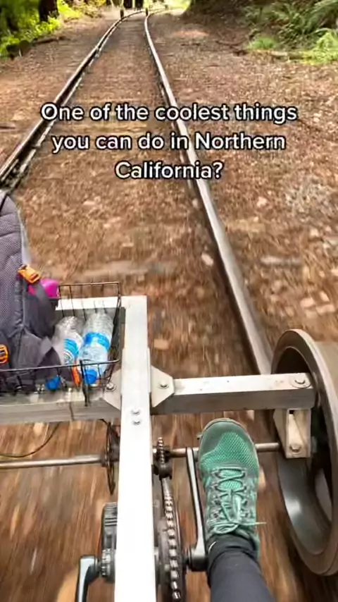 Riding through a redwood forest!#california#explorecalifornia#travelcalifornia#visitcalifornia#mendocinocounty#californiacoast#uniquethingstodo#funthingstodo#mendocinocoast#skunktrain#puddingcreek#railbikes#railbiking#fortbragg#