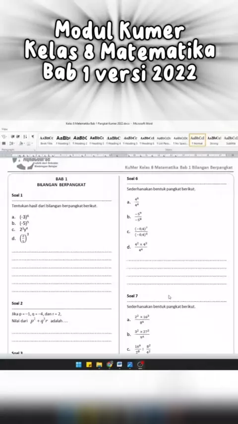 Modul Kumer Kelas 8 Matematika Bab 1 Pangkat Versi 2022 #modulkurikulummerdeka #modulbimbel