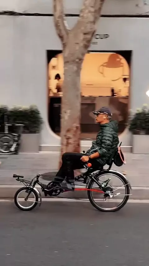 Jaket bulu VS celana pendek lengan pendek sangat panas hari ini! Street shot! Sepeda! Perspektif orang yang lewat! Di bawah pohon!