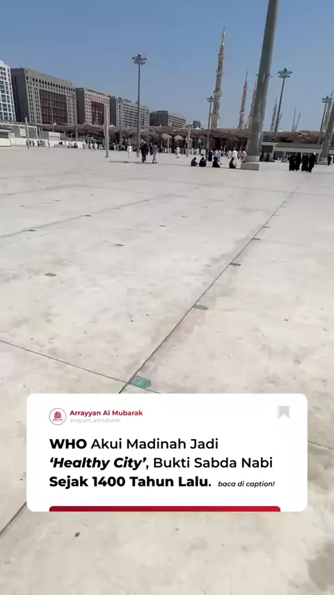 Tahun ini, Madinah kembali dinobatkan WHO sebagai “Healthy City” untuk kedua kalinya berturut-turut, yang artinya Madinah diakui dunia sebagai kota sehat dengan standar internasional. Menariknya, jauh sebelum ada istilah Healthy City, Rasulullah ﷺ sudah menyebut keistimewaan Madinah dalam banyak hadits sejak lebih dari 1400 tahun yang lalu. 1. Madinah disebut sebagai Ṭayyibah dan Thabah Rasulullah ﷺ bersabda bahwa “Sesungguhnya Allah memberikan nama Thabah untuk Madinah (kebaikan)” (HR. Muslim ...