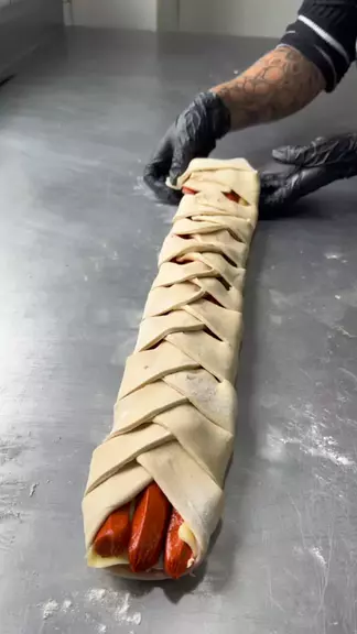 🍱✨ Olha essa massinha salgada toda fofinhaaa! Recheio de salsicha, presunto e queijo derretendo… tão perfeita que até parece de desenho 😍💕 Quem aí também ficou com vontade? 🤤👇 #kawaii #fy #salgadosgourmet #viraliza #receitafacil