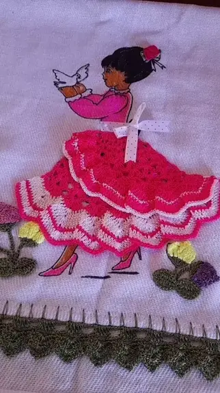 Parte final da transformação do pano de prato simples em um belíssimo!! #sejacriador #arte #croche #boatarde #bordado