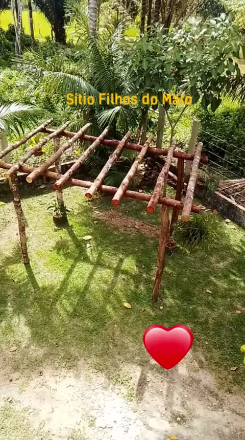 Um cantinho lindo do meu sítio. Pergolado feito por meu esposo pra me presentear e eu já estou decorando com umas plantas. Depois irei pôr um banco de madeira embaixo... #apaixonante #pergolado #sítio More