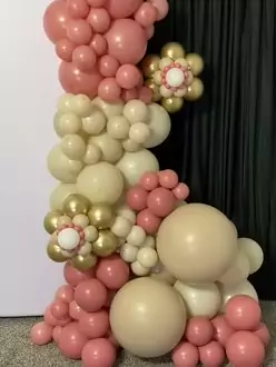 Balloon Garland With Flower Balloons by #askmeforaballoon #balloondecoration #balloongarland #partydecor #balloons #balloonflower #balloon #backdrop