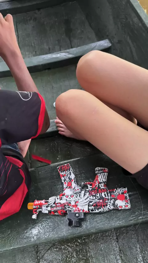 Atirando arminha com bolinha de gel #alegria #diversao #kwai