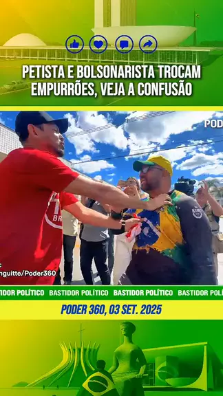 🚨 Petista e Bolsonarista trocam empurrões em frente a casa de Bolsonaro. #Política #BolsonaroNoSTF #JulgamentoBolsonaro #Confusao #CenárioPolítico