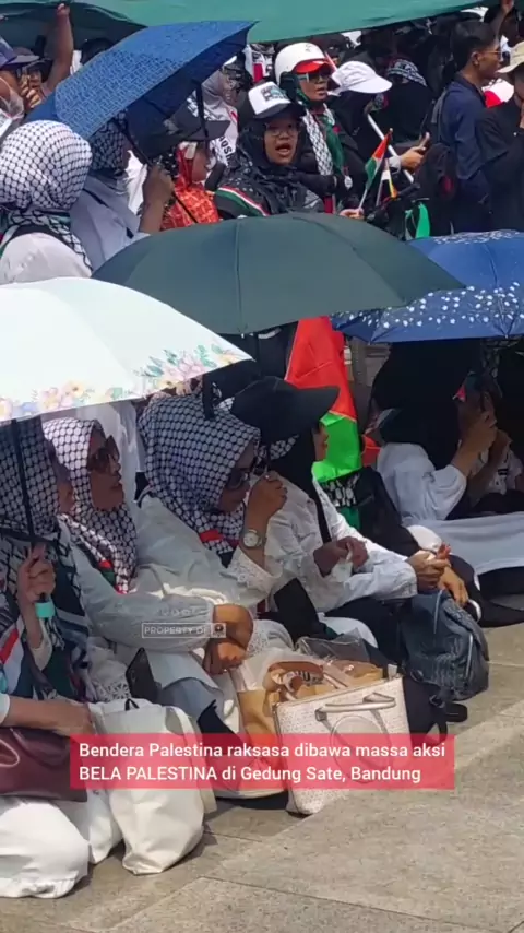 Bendera Palestina raksasa dibawa massa aksi BELA PALESTINA di Gedung Sate, Bandung. #bandung #palestina #