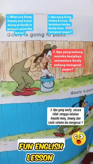 #lebihbaiklagi #FunEnglishLessons #Grammar #pastprogressive #pastperfect The Answers : 1. Huey Dewey and Louie are watching Goofy mixing the paint. 2. They are peeping behind the fence. 3. Goofy has accidentally painted their eyes!!!🤭 #englishgrammartips