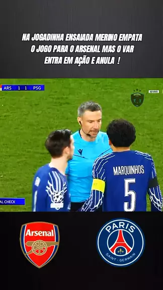 na jogada ensaiada merino empata a partida para o arsenal mas o VAR da impedimento! #arsenalxpsg #uefachampionsleague #ARSENAL #semifinal Más