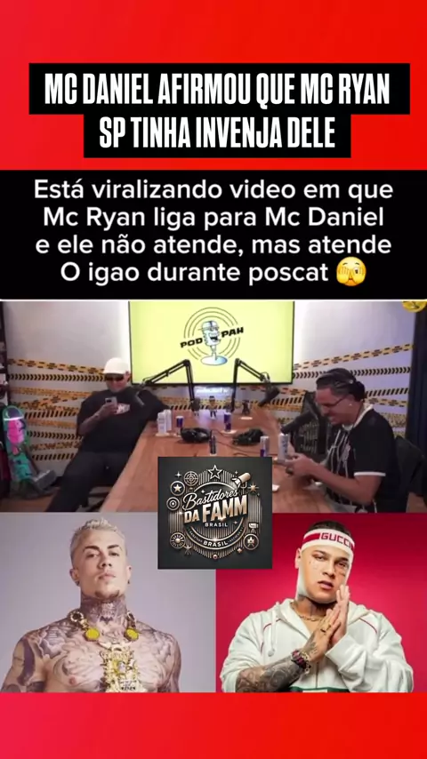 INGRATIDÃO!😳 Ex mulher de Mc Daniel expõe que o canto nunca gostou do Mc Ryan Sp, ele chegou a afirmar que o cantor sentia inveja dele! Para quem não sabe, o Mc Ryan Sp abriu as portas para que o Mc Daniel fizesse sucesso.