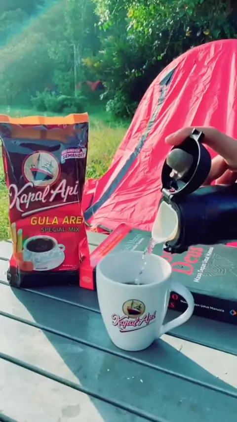 Ngopi Kapal Api Special Mix Gula Aren yang gula arennya ASLI bukan cuma aroma, jelas lebih enak diminum sambil camping gini! @kapalapi_id