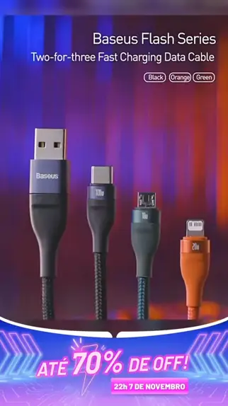 Baseus 3 em 1 cabo usb c FESTIVAL DAS MEGA-OFERTAS Até 70% de OFF! 22:00-24:00 7 DE NOVEMBRO Siga a conta para obter mais descontos #baseus