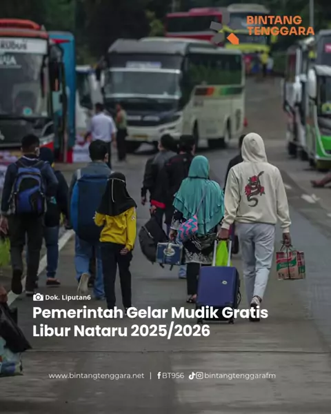 Pemerintah menggelar mudik gratis untuk periode libur akhir tahun Natal 2025 dan Tahun Baru 2026 (Nataru). Hal ini untuk mendukung kelancaran lalu lintas perjalanan dan menekan risiko kecelakaan bagi pemudik terutama pengguna kendaraan sepeda motor. Mengutip kompas.com Wakil Menteri Perhubungan, Suntana menyampaikan skema mudik gratis tahun ini mengikuti pola yang dijalankan sebelumnya. Selain itu pemerintah juga menyiapkan berbagai diskon untuk transportasi darat, laut, dan kereta api ke berba...
