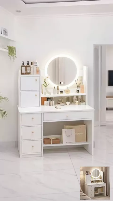 Meja rias idaman wanita ✨ Kamar langsung rapi & estetik. ✔️ Cermin LED terang ✔️ Banyak laci & rak penyimpanan ✔️ Meja luas & kokoh ✔️ Desain minimalis modern Cocok buat make up harian & skincare routine. Tinggi: 127 cm Panjang: 80 cm Lebar: 40 cm 👉 Klik keranjang kuning sekarang sebelum kehabisan.#mejarias#dekorasikamar#mejariasled#mejariasminimalis#furniture