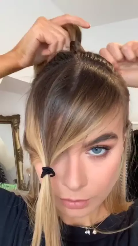 Bella Hadid pony hair in 15 seconds 💫#bellahadidhairstyle##hairtutorial#bellahadidponytail##hairchallenge#bellahadid