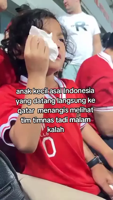 seorang anak kecil asal Indonesia datang langsung ke qatar dia menangis karena timnas tadi malam kalah...