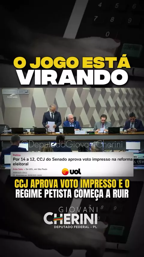 #Repost @deputadogiovanicherini O jogo está virando! Duas vitórias seguidas do povo e da oposição: primeiro a CPMI do INSS e agora o voto impresso aprovado na CCJ por 14 a 12. A transparência venceu, o regime petista está ruindo!