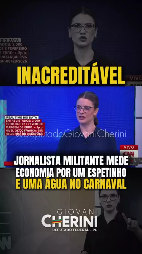 #Repost @deputadogiovanicherini Isso é uma vergonha. A jornalista militante da CNN tenta vender “economia boa” com base em Carnaval, um espetinho e uma água, enquanto o país afunda em rombos, déficit e colapso fiscal. Uma pesquisa que não reflete com a realidade. Sem dados. Sem transparência. Sem critério. Isso não é jornalismo. É militância.ghq