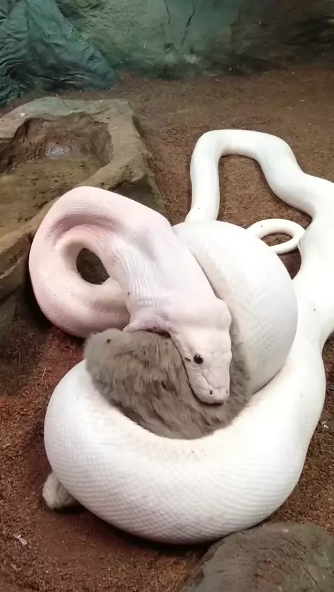 Casper the White Reticulated Python having a meal. #giantsnake #snakefeeding #strangepets #brianbarczyk