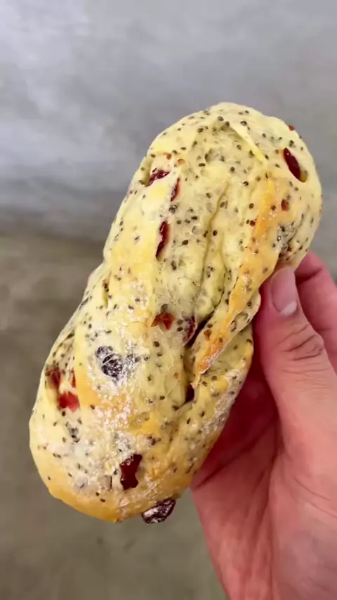 Saran aku sih dateng ke Roti Macan Bandung pas weekday (kecuali Jumat tutup), dateng pas jam 10 harusnya aman sih. Supaya efisien, tiap nomor antrian hanya bisa pilih 1 paket A yg isinya 4 roti mix dan 1 minuman dengan harga 140ribu dan 1 paket B yg isinya 1 roti dan 1 minuman mulai dari 53rb. Kalo mau lebih fleksibel, bisa pre order di tokopedia. Overall rotinya bukan yg lembut bgt tapi ada kenyal dan tekstur seru dari biji bijiannya. Moist dan ukurannya lumayan besar. Cranberry Cheese. Cheesy...