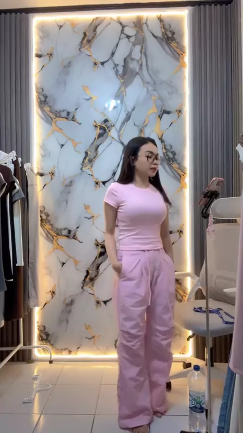 [Premium] Celana serut cepat kering wanita berpinggang tinggi / celana panjang slim fit warna solid wanita