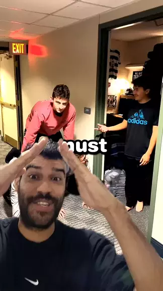 Estudantes universitários constroem pirâmide humana gigante pelo corredor da faculdade. . .