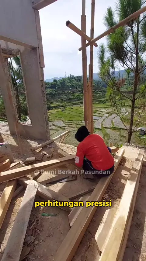 Berada di tengah pemandangan Gununghalu yang indah proyek ke-3 kami terus melangkah maju. Perpaduan beton dan kayu mulai menampilkan karakter rumah kayu yang kuat, dan selaras dengan alam. Hari ini, pemasangan kuda-kuda atap menjadi tonggak penting dalam prosesnya.#rumahkayu#Rumahkayubandung#rumahminimalis#RumahKayu#KontraktorRumahKayu