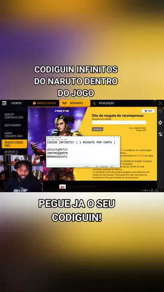 CODIGUIN INFINITOS DO NARUTO DENTRO DO JOGO! #FreeFire #fy #viraliza