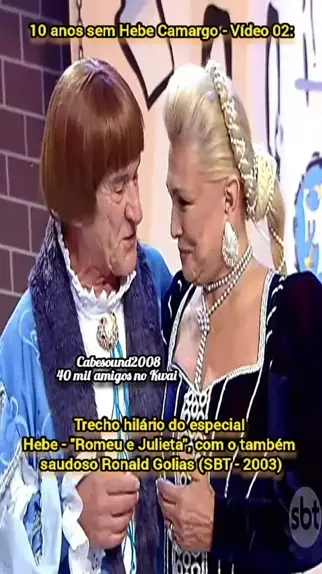 #MomentosInesqueciveisDaTV #HebeCamargo #RonaldGolias #RomeuEJulieta #Ultra10kvis Hebe especial (SBT - 2003): A história de Romeu e Julieta foi revivida de maneira cômica, com o saudoso Ronald Golias, como Romeu e Hebe Camargo, como Julieta.