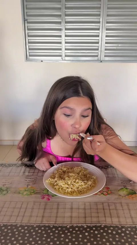 Ela comeu o macarrão