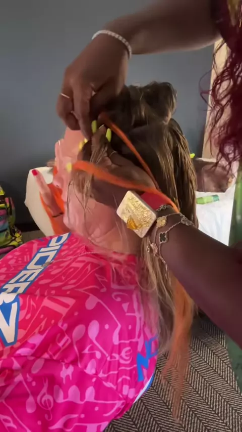 Tranças ousadas, cores brilhantes! Tranças holandesas cruzadas em azul e laranja com coques espaciais para um toque divertido! Quem está pronta para experimentar esse look? # HairGoals # DutchBraids # SpaceBuns # ColorfulHair # BraidGoals # BraidGameStrong # VibrantBraids # Braids # BraidedBeauty # braidstyles # gabby101 # softballhairs # softballbraids # softballhair # sodope # シ # # omg