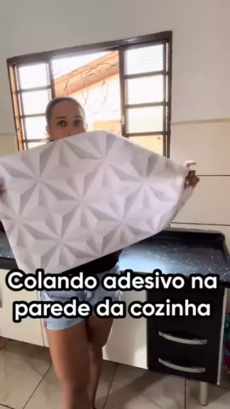Resolvi colocar adesivo na parede da cozinha e ficou incrível🥰 #reforma #cozinha #donadecasa #fory #transformaçao