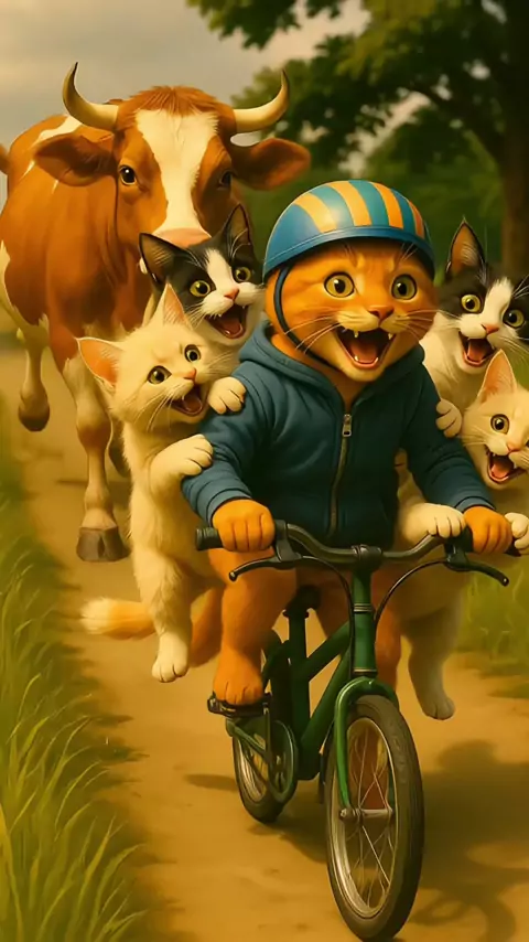 Passeando de bicicletinha pela estrada e do nada um boi começou a perseguir os gatinhos. Mas, quem foi que soltou esse peidinho hein? 𤣠#gatosfofos #gatosengraçados #gatoslindos #cats
