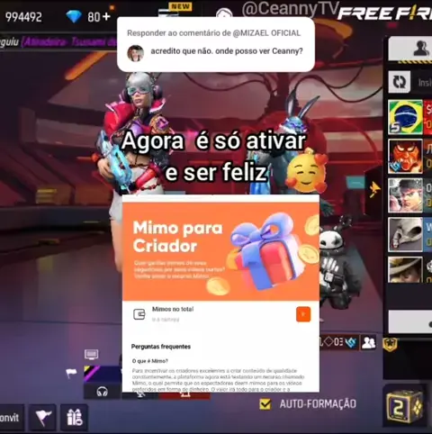 Responder a @MIZAEL OFICIAL(O150000129901240) Como Ativar Os Mimos 🎁 #CeannyTV #FreeFire #freefirenokwai #AquiGeralBrilha #mimo