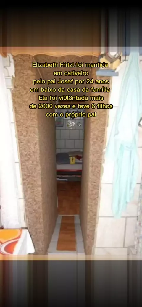 Elisabeth Fritzl é uma mulher austríaca que foi mantida pelo seu pai, Josef Fritzl, durante 24 anos confinada a um bunker construído no porão da casa da família, em Amstetten, e por ele abusada sexualment. Ela teve sete filhos, todos gerados pelo pai, enquanto viveu em cativeiro. #Triste