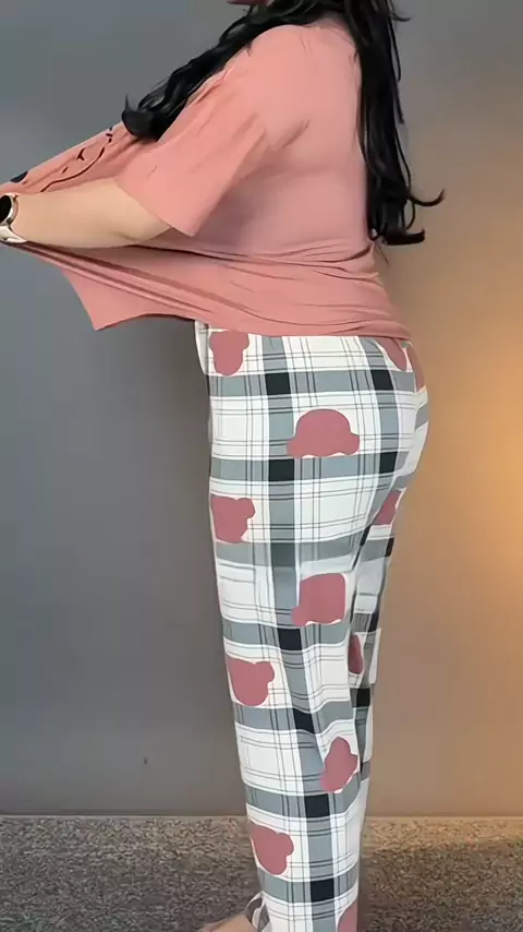 Baju tidur wanita setelan Piyama Lengan Pendek dan Celana Panjang Motif Cek Keranjang Kuning...