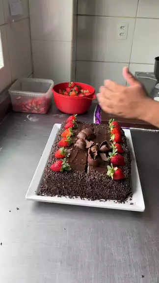 Bolo de chocolate com morango fácil de fazer #Doces #bolo #bolodechocolate #fy