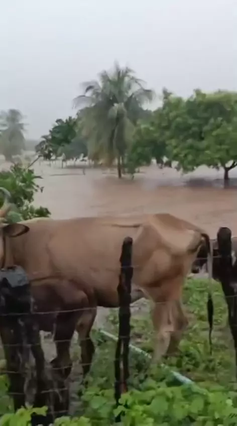 O Rio Quixodé, localizado no Sítio Jucurí, zona rural de Florânia\/RN, hoje(30), alcançou uma das suas maiores cheias. #SupresaDePáscoaKwai #aries #BomPraKWAI #enchente #chuvas