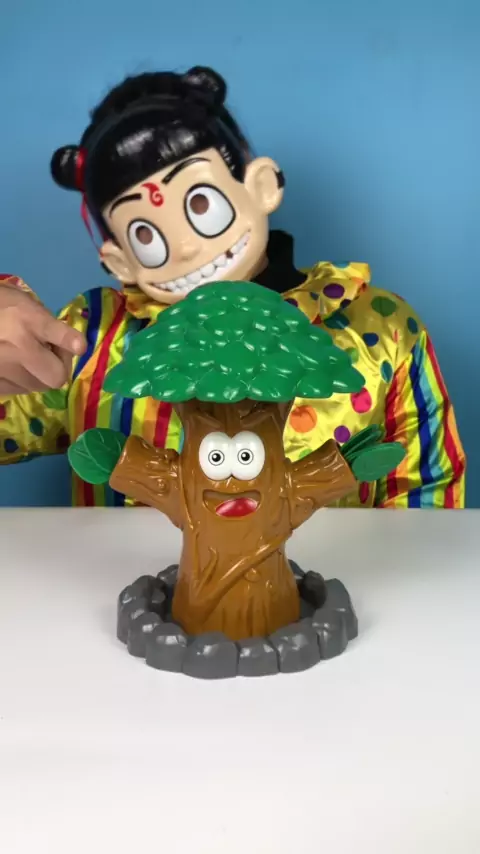A pequena Nezha desafiou o brinquedo da árvore de insetos saltadores.