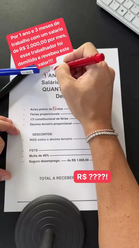 Quanto será que tem para receber um trabalhador que foi demitido após trabalhar por 1 ano e três meses recebendo um salário mensal de R$ 2.000,00??? #lei #direito #trabalhador