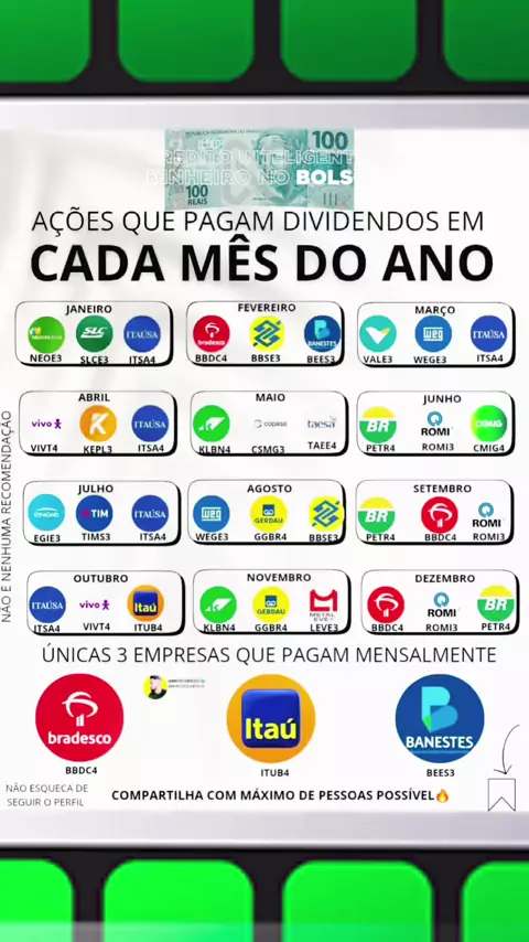 AÇÕES QUE PAGAM DIVIDENDOS EM CADA MÊS DO ANO NA BOLSA DE VALORES #ações #investir #investimentos #diciplina #dinheiro