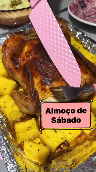 Almoço de sábado, Frango inteiro assado com polenta, salada de maionese, brócolis, arroz e farofa 🥰