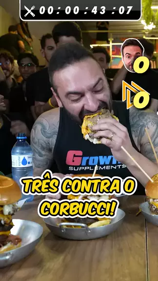 Me chamaram para um DESAFIO 3x1! 🫡 Quem come mais hambúrguer em 30 minutos? 🍔 #desafio #mukbang #corbucci #comida #challenge