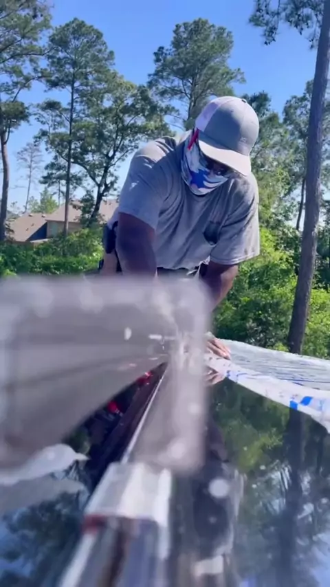 Snappin on that SkyPoly cap! #pergola #skypoly #pergolaroof #pergolacover #patiocover #polycarbonateroof #standingseam
