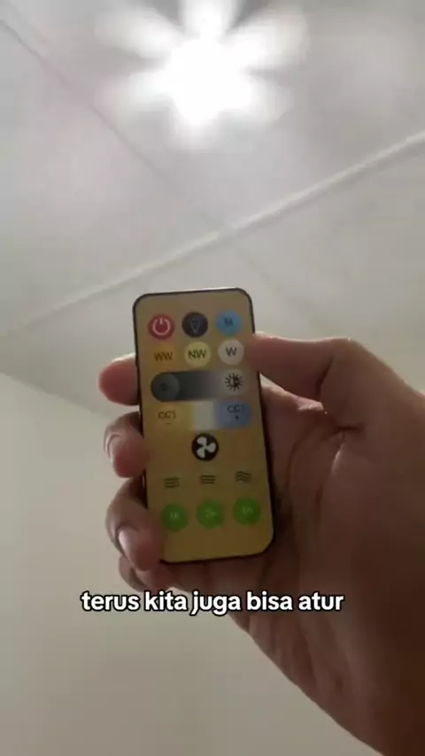 Ini cara nyalain dan matiin kipas lampunya, udah ada remotenya #kipaslampu #lampukipas #kipasanginlampu #kipasangin #lampu