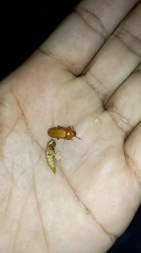 metamorfose quase completa pupa se transformando em besouro do tenebrio! #tenebriomolitor #pupa #besouro #larva #alimentovivo