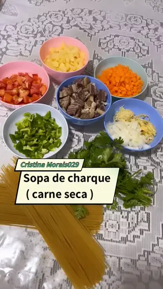 Sopa de charque ( carne seca ) Ingredientes 1/2 kilo de charque ( carne seca ) 2 cenonas picadinha 4 batata inglesa picadinha 2 tomates picados 1 cebola picadinha 1/2 pimentão picado Alho amassado Pimenta de cheiro a gsoto Coetro Pimenta do reino Macarrão #sopa #receitas #fy