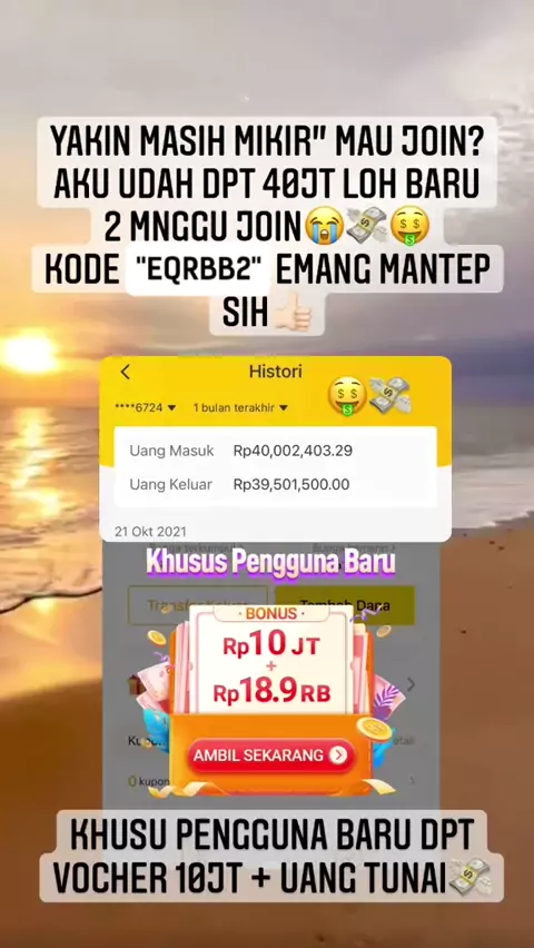 masukan refferal ( EQRBB2 ) Khusus pengguna baru dapat kupon 10jt sama uang tunai