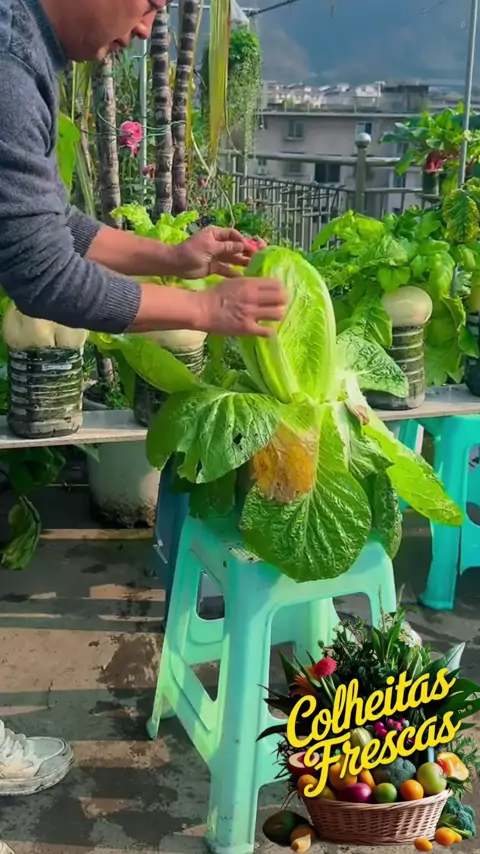 🙏 Pequenos vasos, grandes colheitas! Lindas hortaliças 🌿💚 #ColheitaAbençoada #HortaDoméstica #VidaSustentável