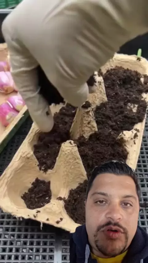 Mini canteiro de cebolinha em cartela de ovo #hortaemapartamentos #hortaemcasa #hortaemvasos